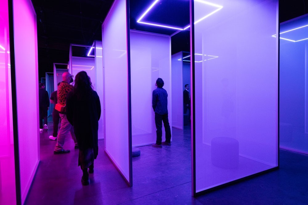 Once settled, they were ushered into Chromasonic Field—a large-scale, walk-through installation where translucent screens transformed sound into color and color into sound. Driven by an algorithmic interplay of light and sonic waves, the experience was mesmerizing and sensory-rich—an invitation to dissolve the boundary between art and science.